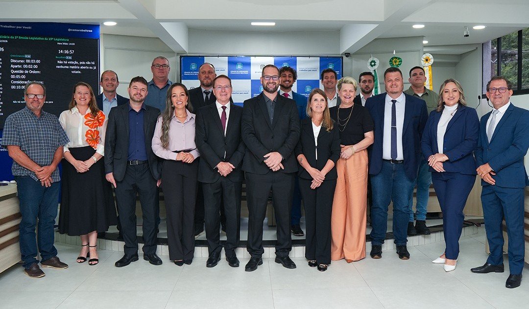 Adolfo é suplente do PSDB e fez 719 votos na eleição municipal de 2024. Além dos vereadores, a posse foi prestigiada por diversas autoridades, dentre elas o prefeito Antonio Pedron e a vice-prefeita Maria de Lourdes Bertani, familiares e amigos.