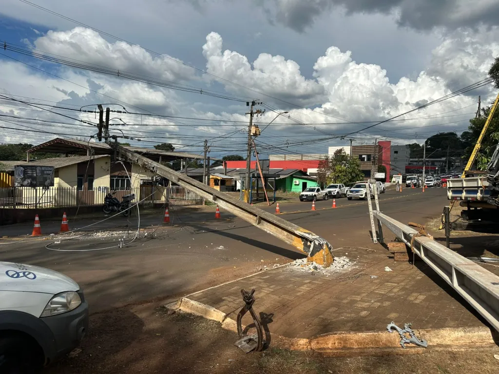 Após caminhão derrubar poste, grande parte da cidade ficou sem luz e água