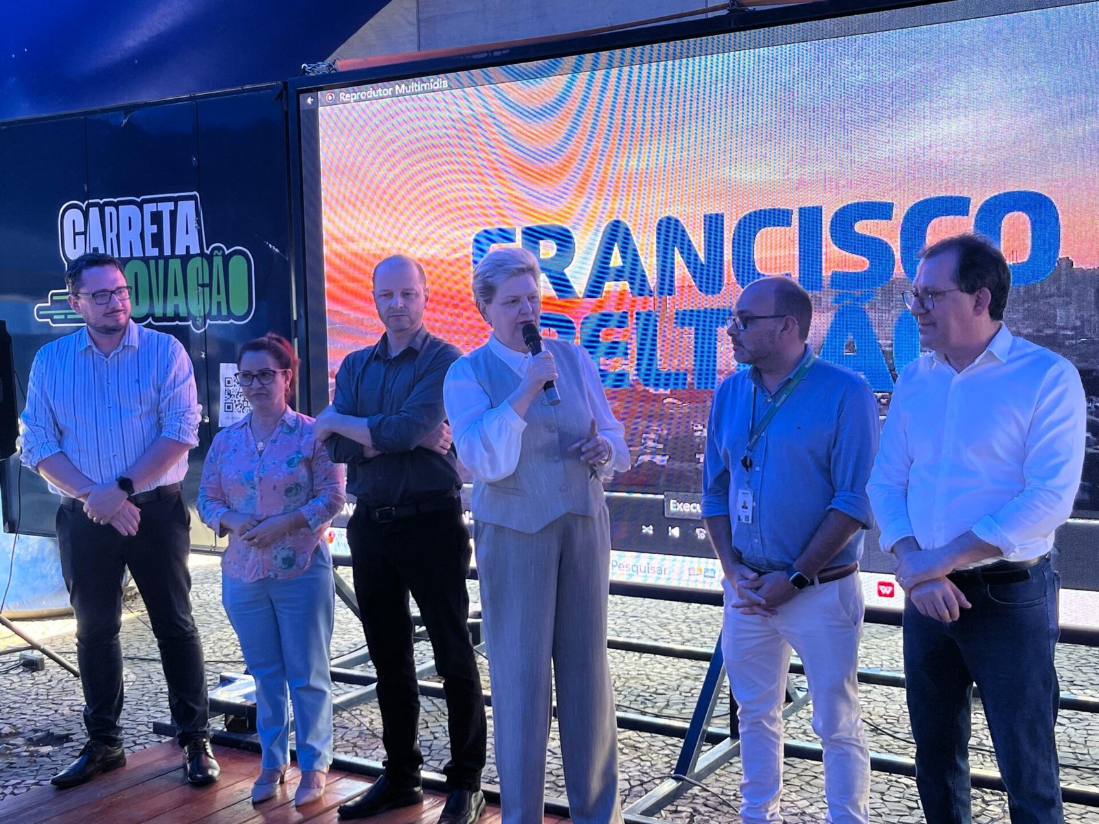 As atividades da Carreta foram abertas hoje cedo com a presença de lideranças de diversos segmentos. Entre eles a vice-prefeita Lurdinha Bertani, o presidente do Conselho Municipal de Tecnologia e Inovação, Thiago Casagrande, o vereador Silmar Gallina e o assessor da Secretaria da Inovação e Inteligência Artificial do Paraná, Luiz Manta.
