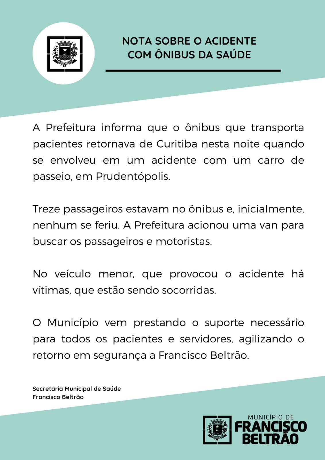 Colisão entre courier e ônibus da saúde de Francisco Beltrão deixa dois feridos