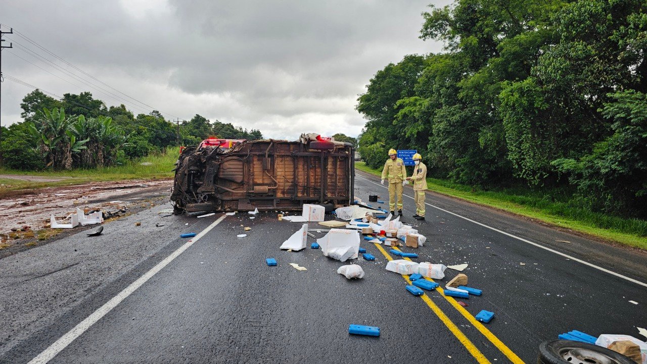 O motorista do caminhão também foi atendido e levado ao hospital, apresentando fratura no braço direito.