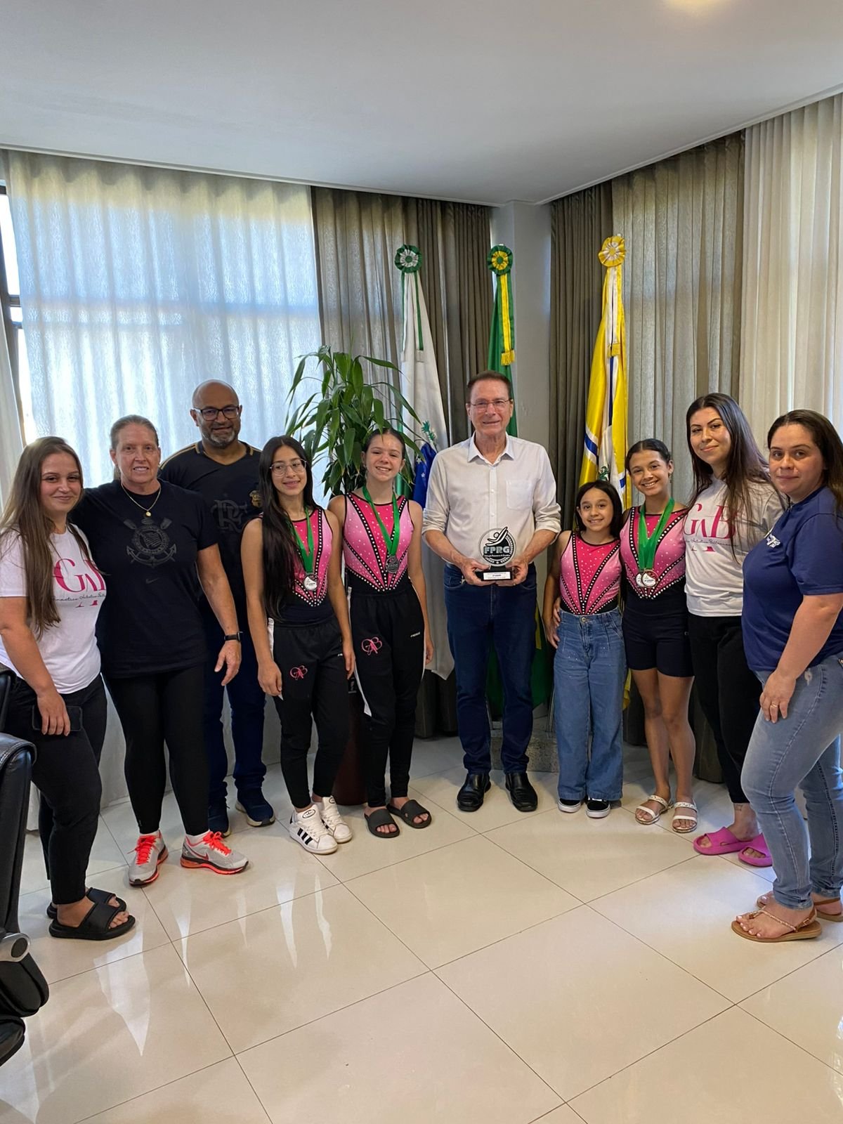 Atletas do Projeto de Ginástica Artística Beltronense estiveram no gabinete da Prefeitura para apresentar as medalhas e o troféu conquistados na Copa Paraná de Ginástica Artística, realizada no último dia 06 de dezembro, em Telêmaco Borba. A competição reuniu equipes de várias regiões do Estado e marcou mais um importante avanço para a modalidade em Francisco Beltrão.