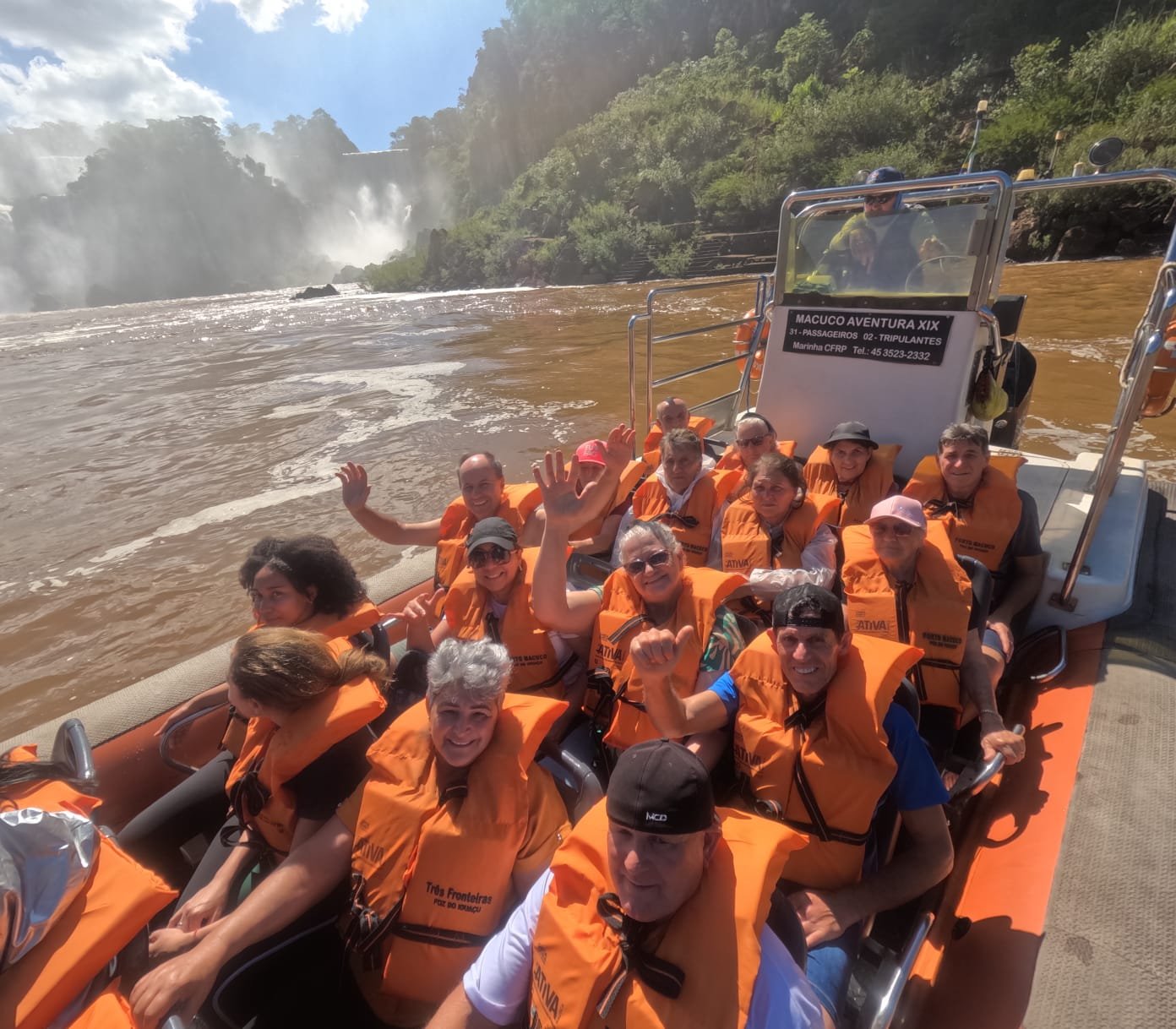 Após o almoço, os participantes viveram um dos momentos mais emocionantes da viagem: a visita ao Parque Nacional do Iguaçu e o tradicional Macuco Safari, que levou o grupo a sentir de perto a força das Cataratas, em um passeio que combinou aventura e contemplação.