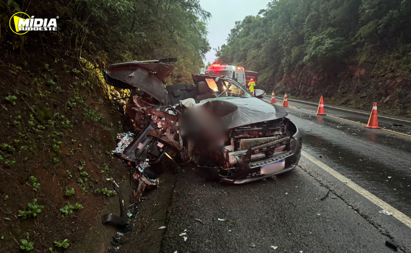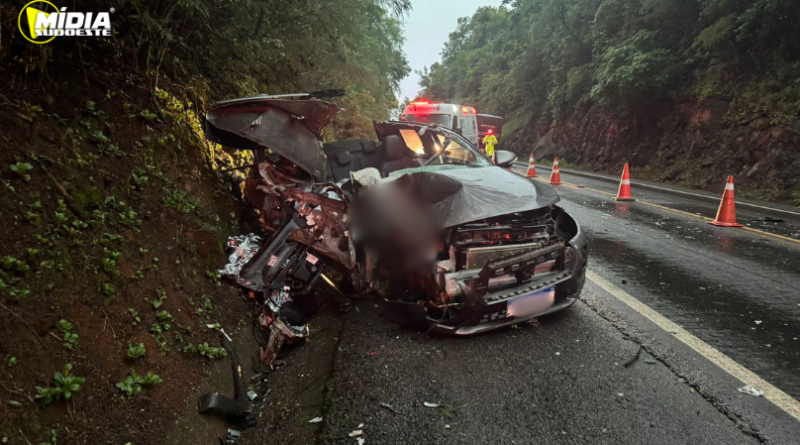 Mãe morre e pai e filha ficam feridos em acidente entre carro e caminhão no Sudoeste