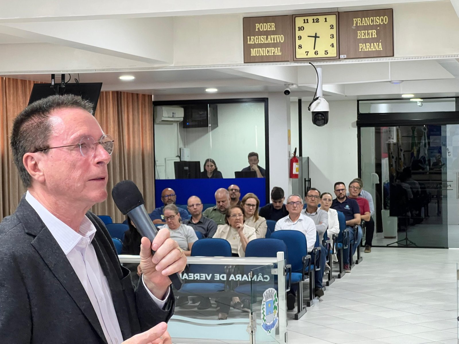 A entrega ocorreu durante a audiência pública de prestação de contas do quadrimestre, que detalha a saúde financeira de áreas como a Saúde, Educação e Assistência Social, além das finanças gerais da Prefeitura. O momento foi acompanhado pela vice-prefeita, Lurdinha Bertani, presidente da Comissão de Finanças e Orçamento, Fernando Misturini, secretários, vereadores Maria de Fátima, Tiago Correa, Aline Biezus, Bruno Savarro e Julio Spada e representantes de instituições.