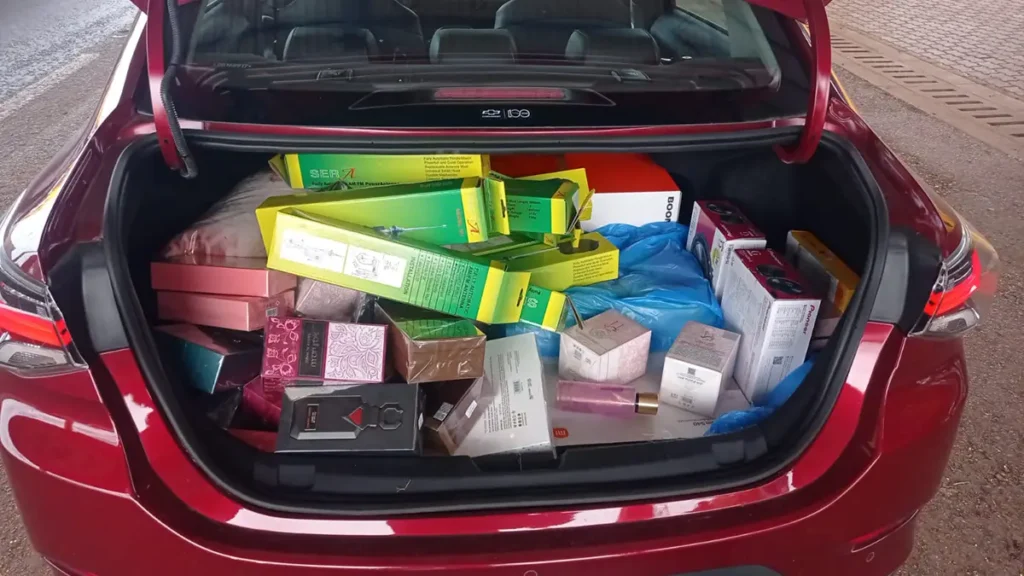 Durante a fiscalização, os policiais encontraram as ampolas de medicamentos para emagrecimento, além de aparelhos eletrônicos transportados no veículo.